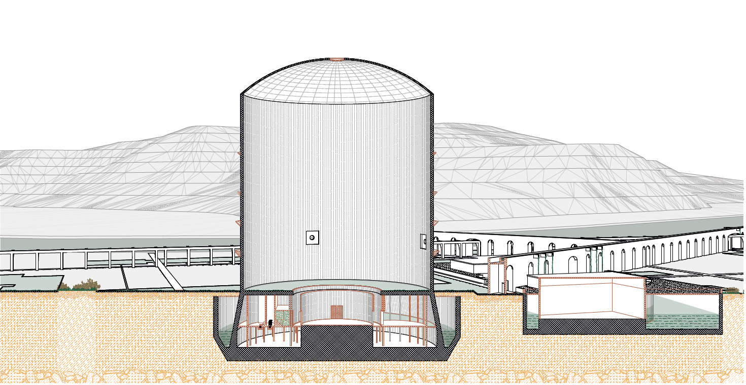 20. Dezember 2019: In Mühleberg wird das erste Schweizer Kernkraftwerk stillgelegt. Ab 2031 soll das Areal zum Rückbau freigegeben werden, doch für die zukünftige Nutzung fehlen bislang öffentlichen Studien. Das Projekt zeigt eine Intervention, die verhindert, dass alles abgerissen und aus dem Gedächtnis getilgt wird. Die Ruine wird zu einem Ort, wo die Geschichte der Kernkraft und der Gesellschaftswandel für kommende Generationen greifbar bleibt. Das Reaktorgebäude wird zu einem Bad umgebaut, das den Raum körperlich erfahrbar macht. Der Hochkamin wird Treffpunkt und Museum, kann aber auch von Fledermäusen genutzt werden. Der restliche Teil des Areals wird als Flussbad genutzt oder renaturiert. Die Gebäudeabdrücke werden zu metaphysischen Objekten in einem Landschaftspark mit wilder Sukzessionsnatur. Verbunden werden die verschiedenen Orte durch eine horizontale, massstabslose Grossstruktur, die an den römischen Aquädukt, den Hochkamin und das Reaktorgebäude anknüpft.