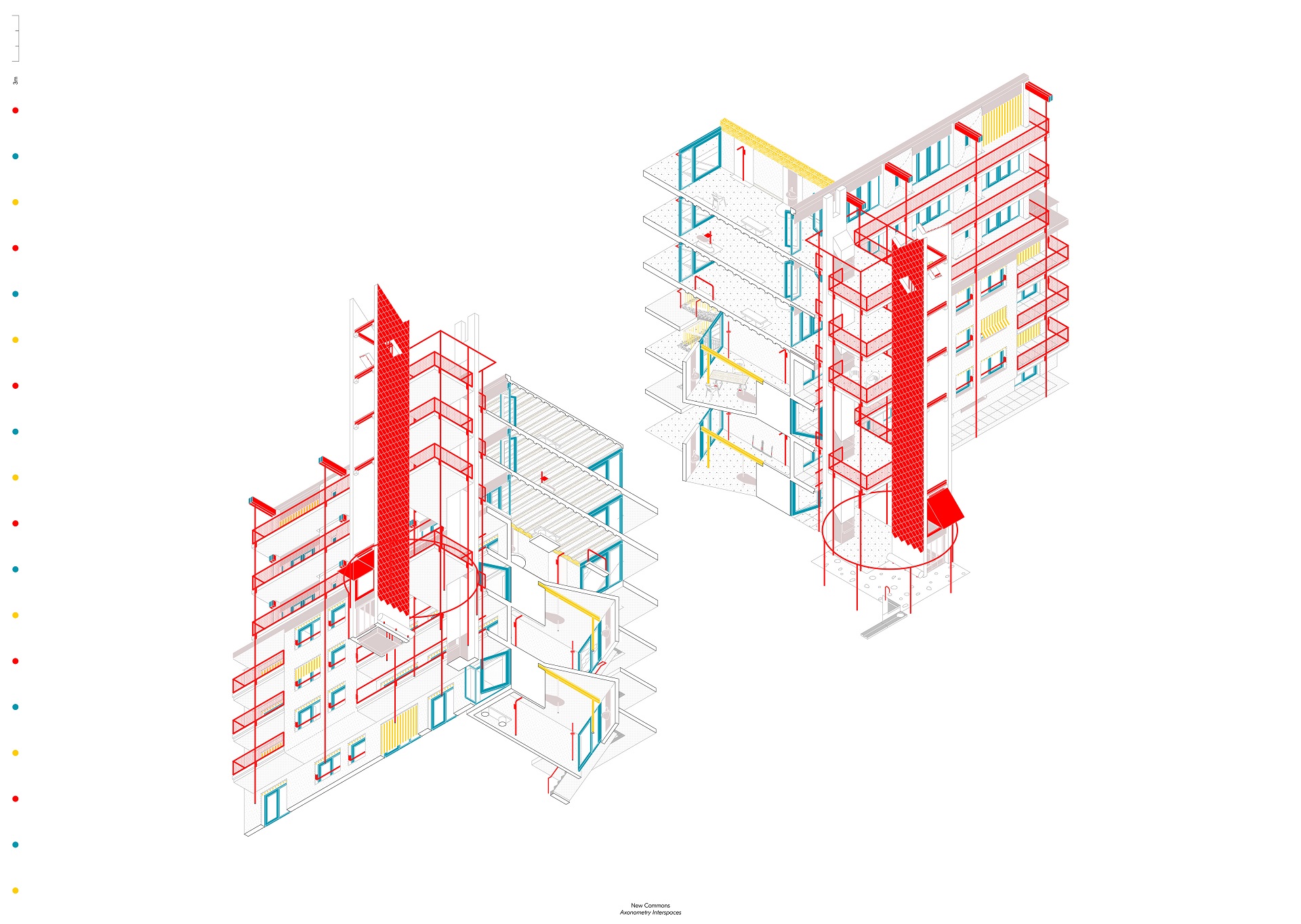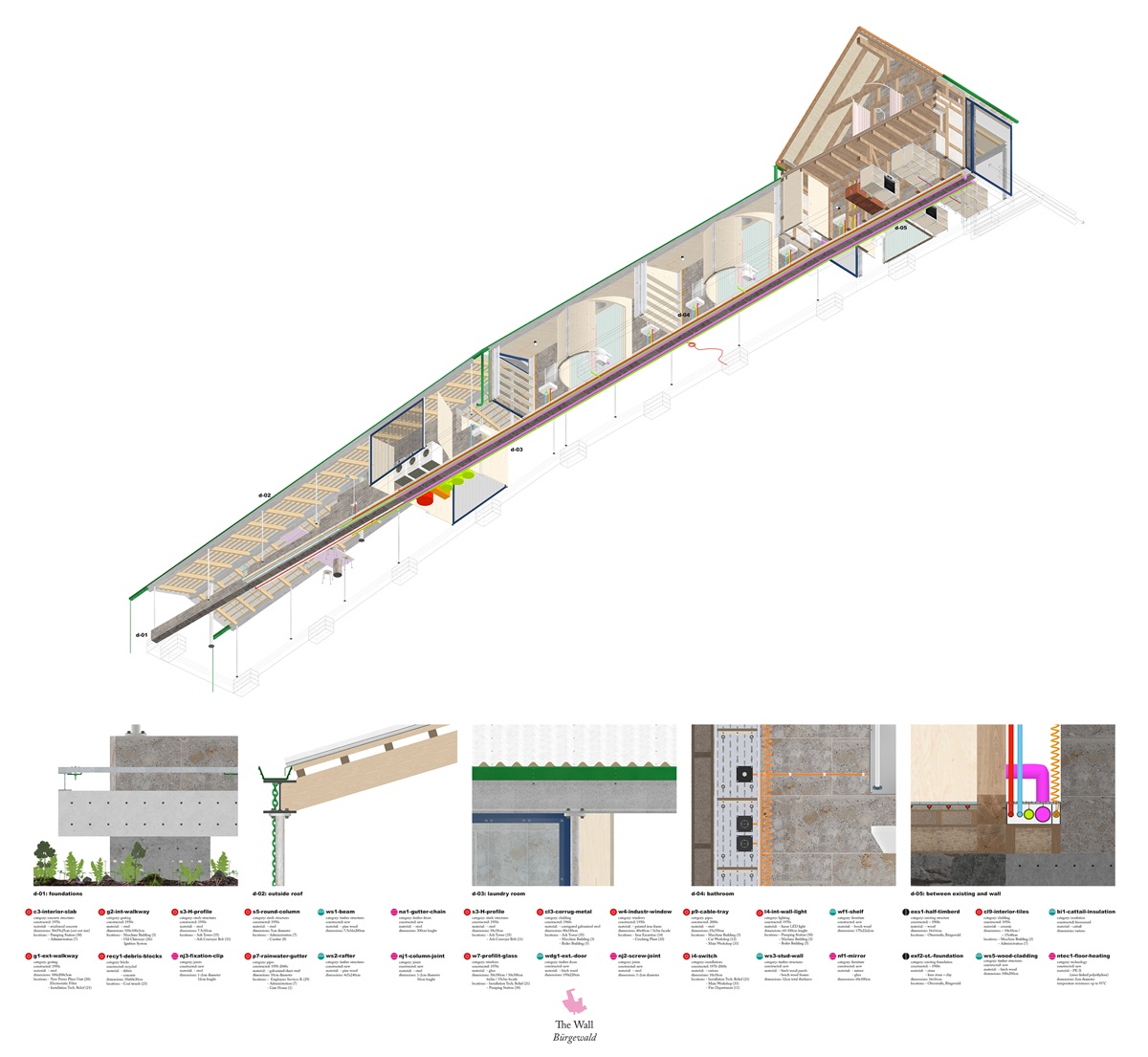 Single-family homes are among the most common domestic architectures in Germany. As a basis for this project, the theoretical statement The Boundaries of Labor which examines domestic space in the crisis of (elderly) care, identifies single-family homes as the place where the current crisis becomes most evident. They conceal the work of (mostly female) caregivers and isolate those that depend on care. Drawing on research and conversations with caregivers, the project proposes scenarios that examine potentials for transformation in a single-family home neighborhood in Borken, Germany, over the next 30 years. Differing in scale, these interventions mean to facilitate social connectivity, mutual aid, civility and adaptability for changing life circumstances of the residents. The aim is to create an architecture which considers the (affective) relations that residents form with their surroundings—by fostering social and cultural acceptance as well as an increased visibility of aging.