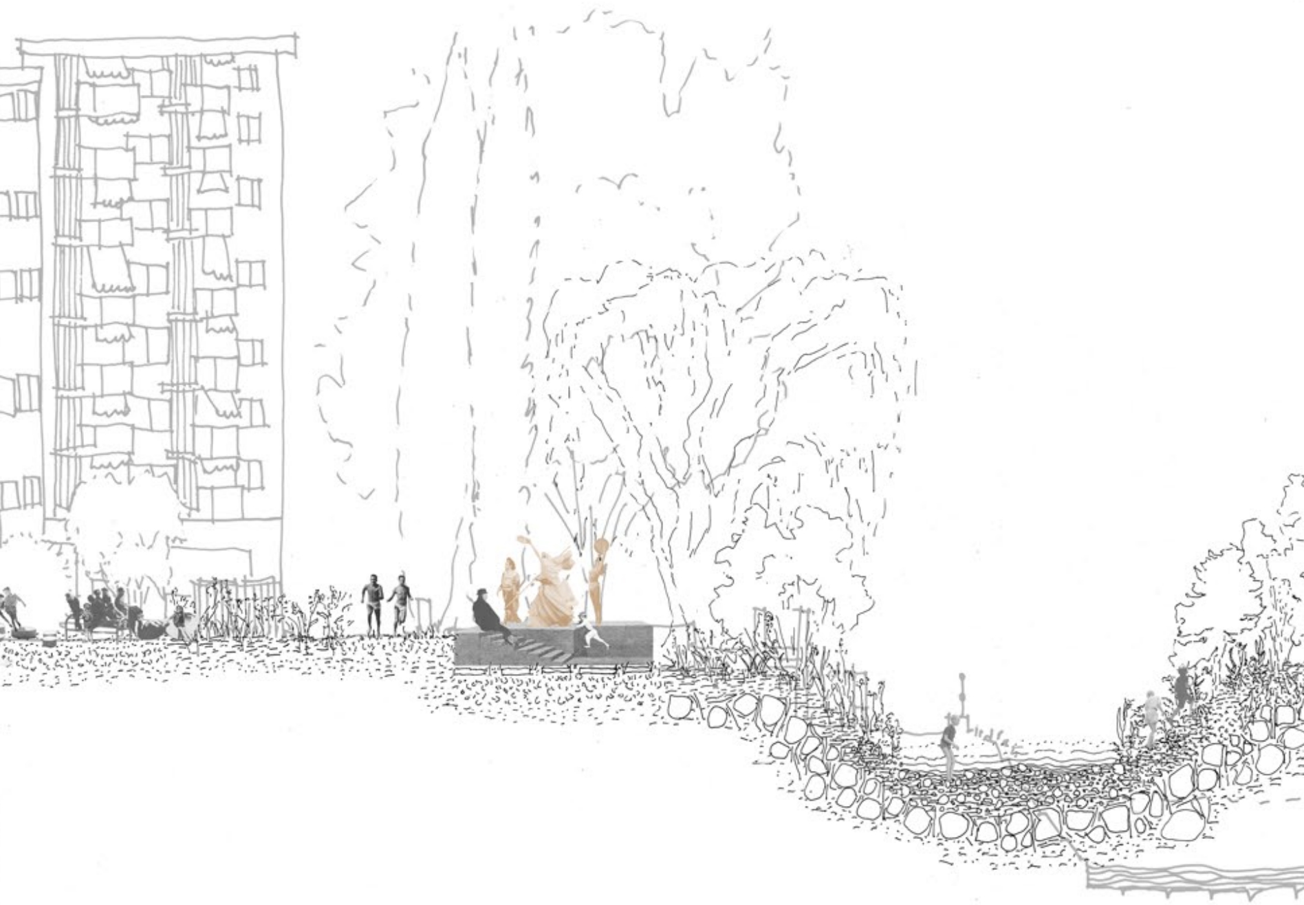 Single-family homes are among the most common domestic architectures in Germany. As a basis for this project, the theoretical statement The Boundaries of Labor which examines domestic space in the crisis of (elderly) care, identifies single-family homes as the place where the current crisis becomes most evident. They conceal the work of (mostly female) caregivers and isolate those that depend on care. Drawing on research and conversations with caregivers, the project proposes scenarios that examine potentials for transformation in a single-family home neighborhood in Borken, Germany, over the next 30 years. Differing in scale, these interventions mean to facilitate social connectivity, mutual aid, civility and adaptability for changing life circumstances of the residents. The aim is to create an architecture which considers the (affective) relations that residents form with their surroundings—by fostering social and cultural acceptance as well as an increased visibility of aging.