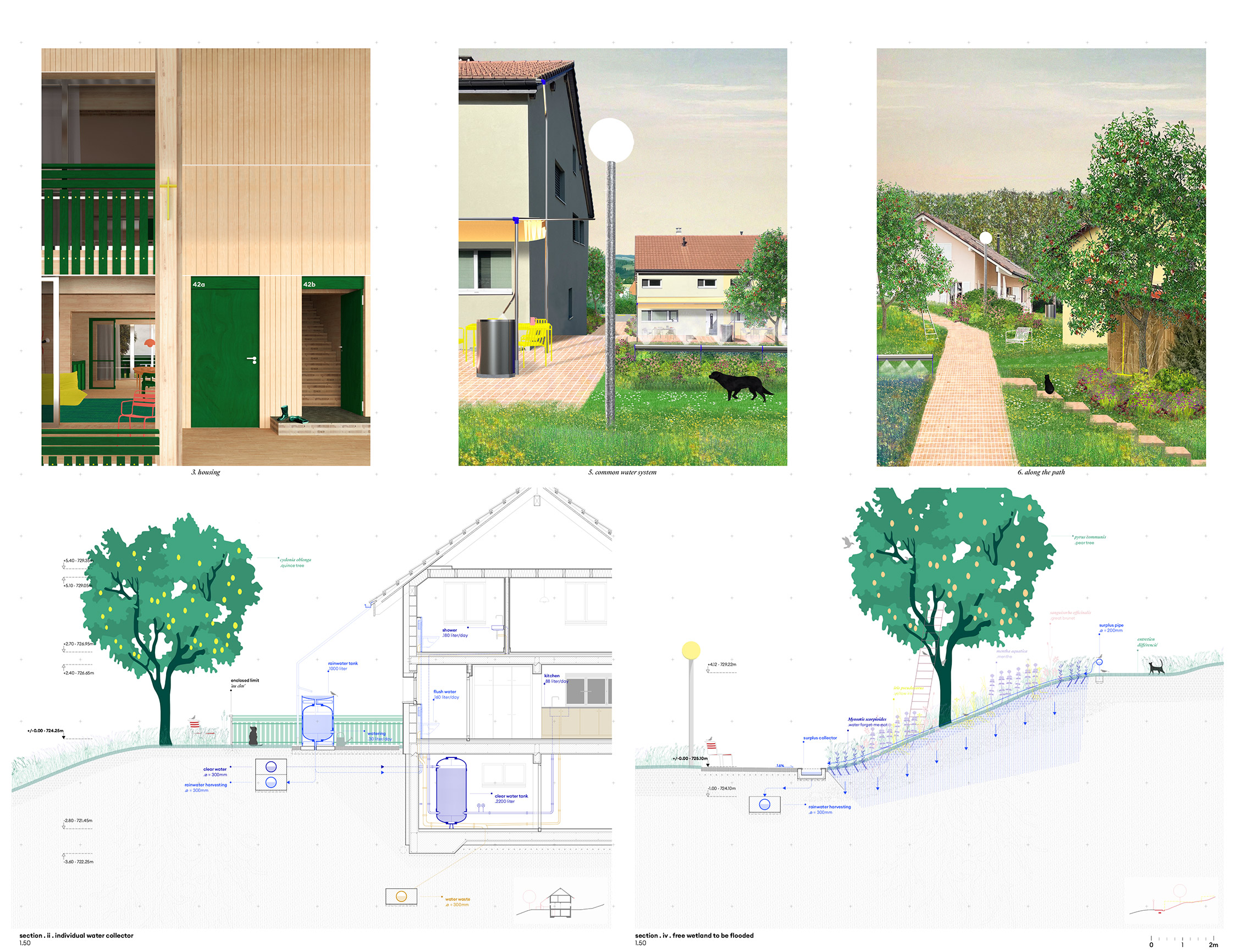 L’énoncé théorique comprend la recherche typologique de la villa unifamiliale en tant que modèle prédominant de logement en Suisse. Cette prédominance soulève le caractère générique du type permettant à l’habitant d’y associer sa propre spécificité domestique. L’étude contextualise ensuite sa recherche dans le canton de Fribourg, précisément dans le district de la Glâne. Une analyse qui permet de comprendre l’influence de la villa unifamiliale dans un territoire incontrôlable par la structure socio-politique de ses communes qualifiées à l’échelle nationale de minuscules et par sa proximité avec l’arc lémanique. La villa unifamiliale est ainsi la cause de l’étalement urbain qui transforme l’ex-territoire rural en une campagne urbanisée, soit le masque du rural.
