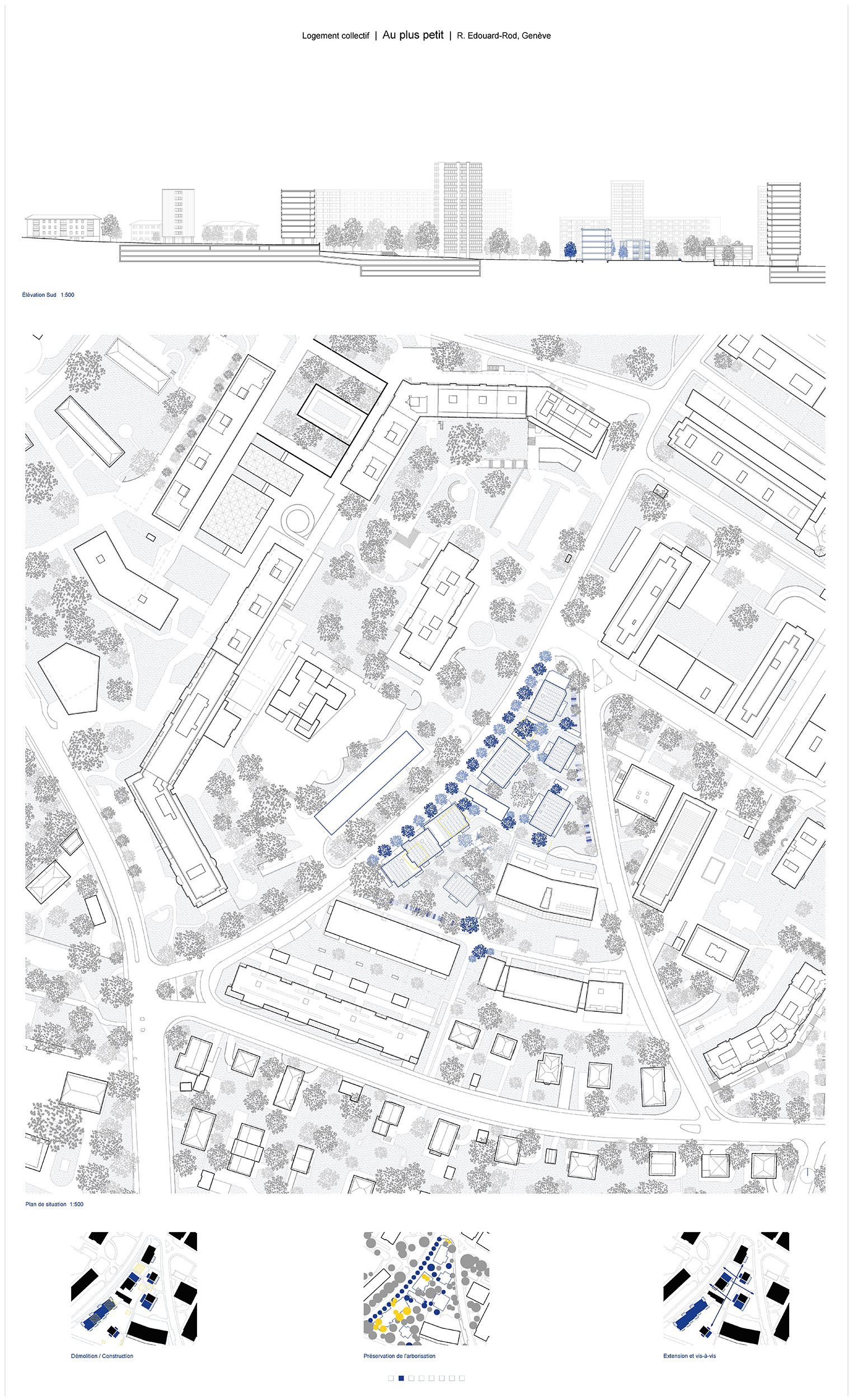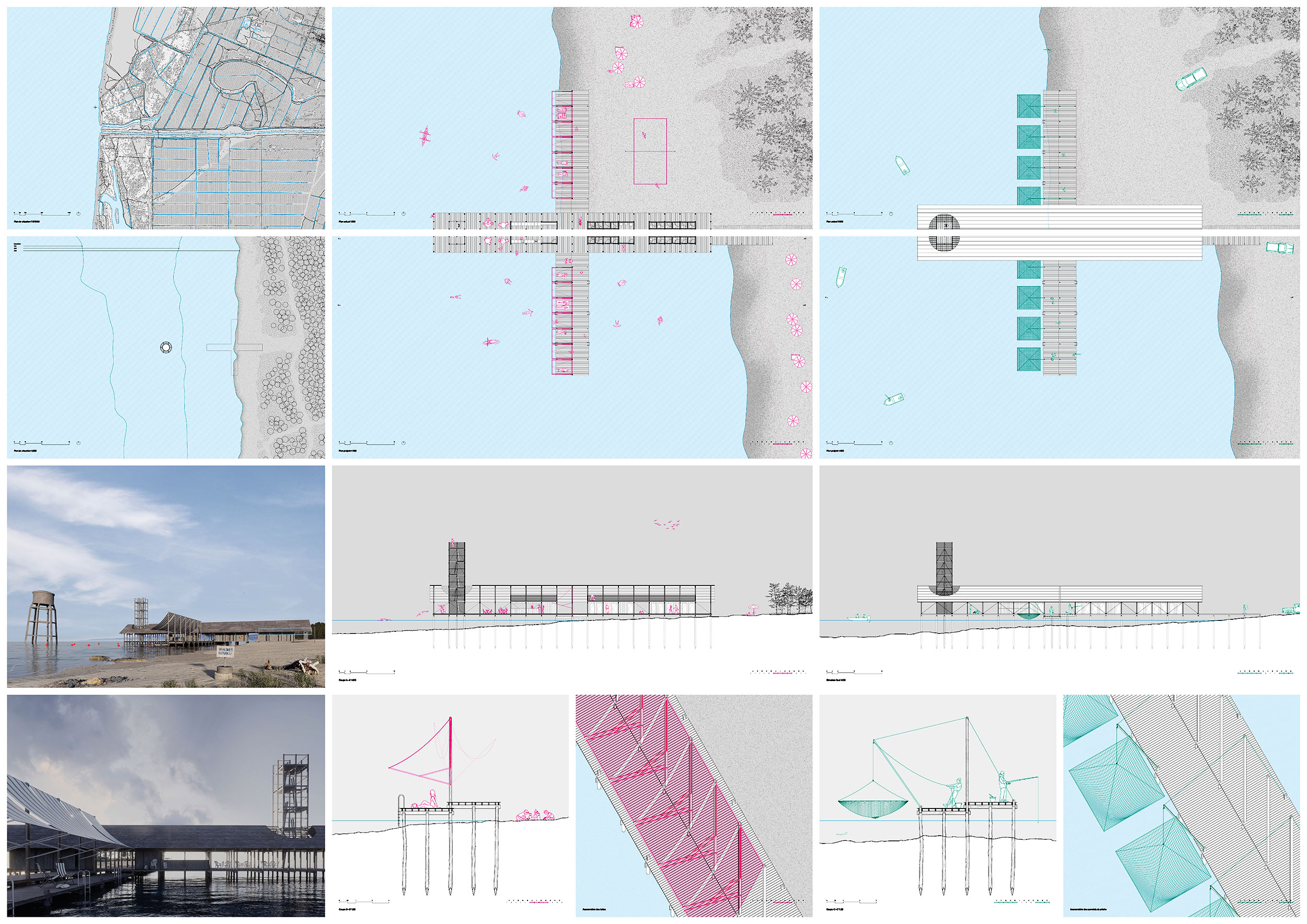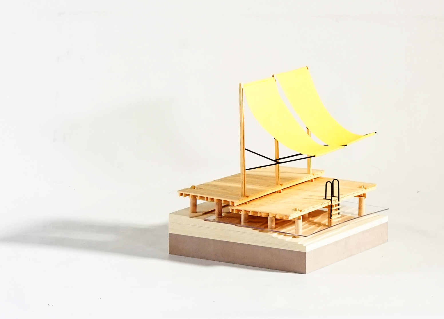 Le projet, plutôt que de tenter en vain de contenir le recul du littoral, propose au contraire de l’accepter et de travailler avec cette ligne côtière en mouvement. Le dispositif cruciforme délimite deux aires de baignade, puis quatre lorsque la côte aura reculé.
