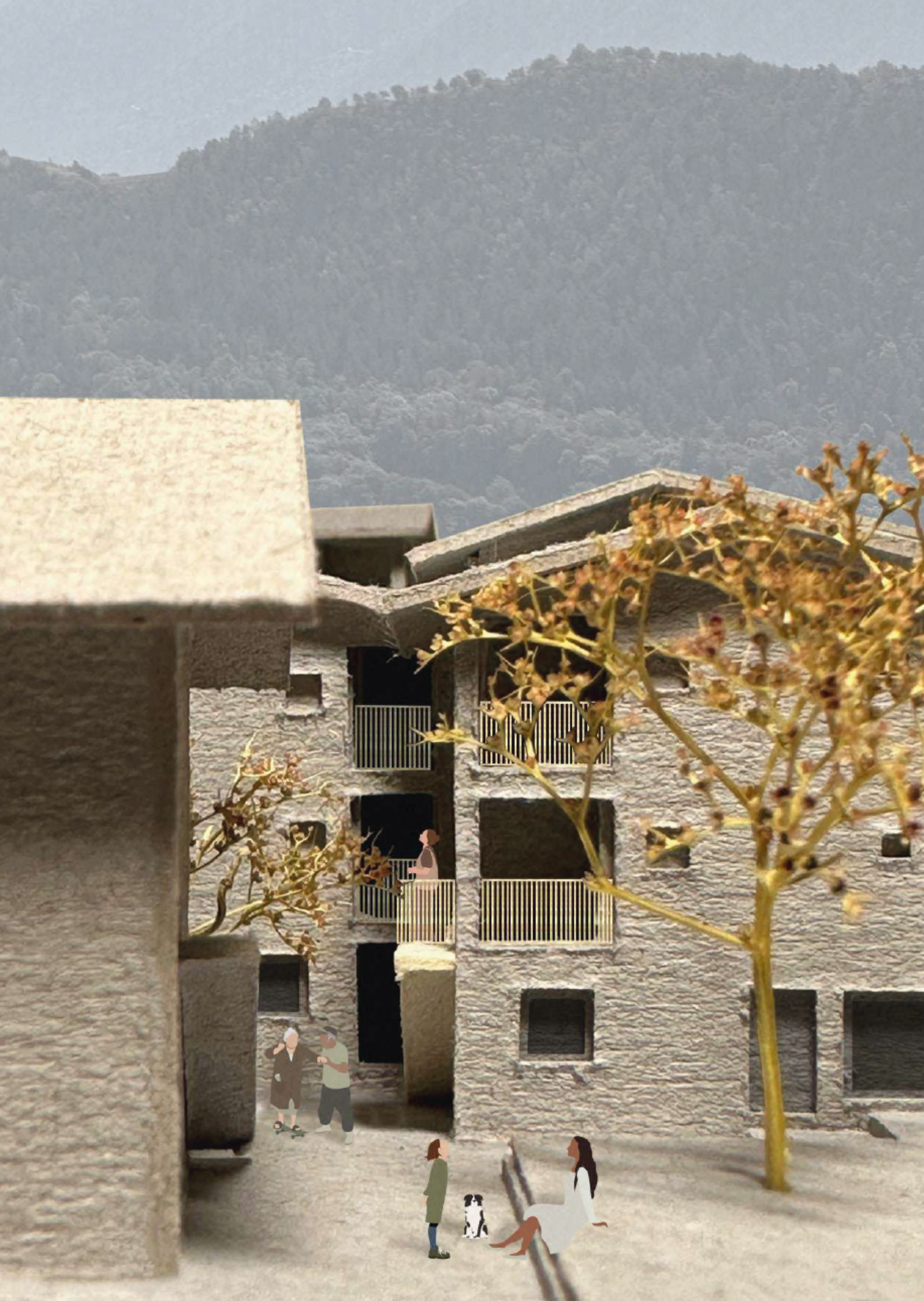 Comment puiser dans l’identité du lieu pour créer des espaces de qualité ? Comment lutter contre le mitage du territoire ? Ce projet propose une piste pour un village valaisan de basse montagne. En re-densifiant le centre du village et en y apportant des programmes de logement coopératif et de logement pour personnes âgées, des lieux de rencontre et petits commerces, la proposition permet d’envisager une nouvelle dynamique villageoise.