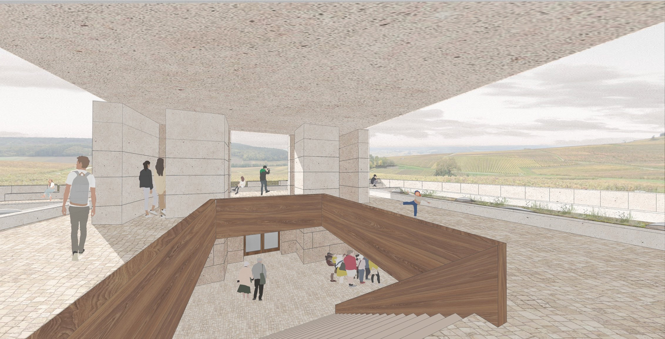 Ce projet s’articule sur plusieurs problématiques autour des notions de valorisation et de préservation patrimoniale. Programmatiquement, il s’agit de proposer des équipements sociaux-culturels qui permettent de garder une activité annuelle afin de lutter contre le phénomène de la « désertification » sociale observée sur le territoire rural français. Le travail propose donc une permanence scolaire et médicale ainsi qu’un centre culturel. Un programme à vocation touristique doit ancrer une activité qui ne serait pas saisonnière comme c’est le cas des régions viticoles. Une analyse extrêmement soignée de la morphologie du village a permis d’identifier des sites d’intervention qui permettent à ces nouveaux programmes de se fondre pour ainsi dire dans la structure villageoise tout en mettant en évidence les qualités intrinsèques des lieux désignés, les perspectives visuelles, les espaces signifiants, les matérialités. Finalement ce choix de matériau local assure une vertu environnementale exceptionnelle en termes d’usages, de mise en oeuvre, de grammaire architecturale et spatiale.