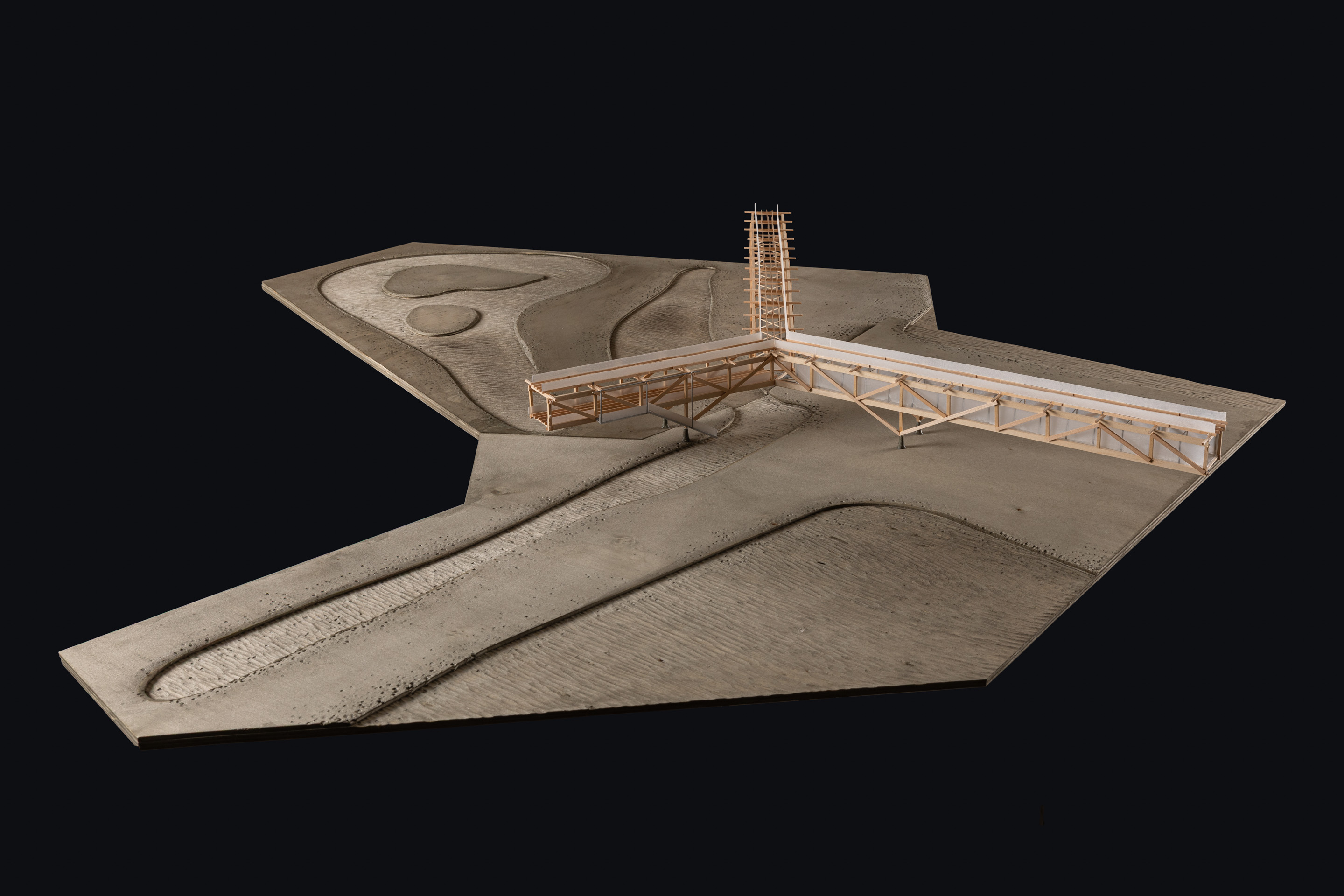 In Anlehnung an Christian Norberg-Schulz’ Idee vom Genius Loci geht es darum, den Geist des Ortes neu zu deuten und zu beleben. «Linha do Sal» ist eine lineare Infrastruktur, die ein 26 Hektar grosses Fragment der 360 Hektar umfassenden Salzlandschaft Alcochetes reaktiviert. Die Struktur orientiert sich an der Geometrie und Morphologie der Landschaft. Sie ist einerseits geradlinig und konstruktiv klar, andererseits bewusst fragmentiert und organisch in den Übergängen. Mineralische Fundamente tragen ein korrosionsresistentes Holzfachwerk aus metallarmen, reinen Holzverbindungen – robust, verankert und zugleich wandelbar in der Zeit. Als infrastruktureller Palimpsest ist das Projekt auf zeitliche Transformation angelegt: Heute dient es der kulturellen Reaktivierung, in naher Zukunft – mit steigendem Meeresspiegel – wird es als erhöhter Pfad durch überflutete Salinen fungieren. In ferner Zeit bleibt die mineralische Struktur als anthropomorphes Artefakt bestehen – ein stilles Zeugnis einer neu gedachten Salzkultur des 21. Jahrhunderts.