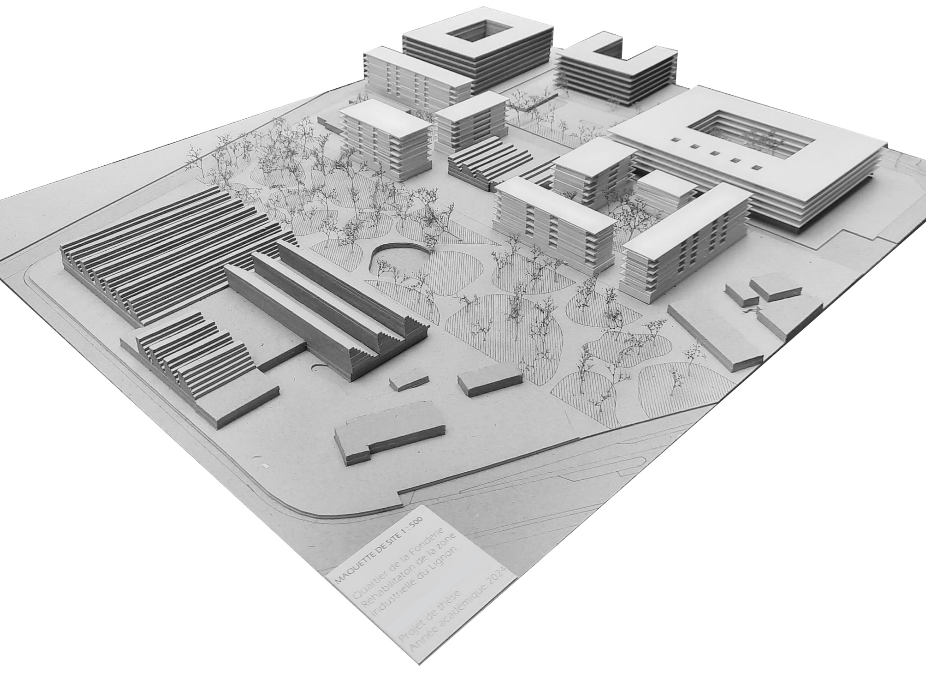 Le projet tisse un lien entre les différents quartiers, par la création de 3 pôles majeurs: un parc public qui s’étend le long de la Fonderie et qui constitue un apport de végétation important, la place de l’Industrie qui est tenue par la fin de Gordon-Benett et du nouveau projet ainsi que les cours intérieurs des îlots ouverts, intériorités majeures pour les habitants. Le projet propose une utilisation innovante des vides urbains. Deux bâtiments sont réutilisés: le premier celui de la Fonderie, change totalement d’affectation pour devenir un centre de loisirs. Les activités proposées ne nécessitent pas d’isoler le bâtiment. Le deuxième bâtiment, celui des garages, propose une surélévation de logements. Cette surélévation est possible grâce au renfort de l’existant avec un système de poteaux-poutres en bois et métal ainsi qu’un étage technique servant de dalle de répartition. En somme, ce processus met en lumière d’une part le patrimoine bâti comme étant une base solide de projet, et de l’autre une utilisation des matériaux nobles et réfléchie afin de créer un tout cohérent. Le Projet propose de rehausser, transformer ou réaffecter les structures existantes plutôt que de construire de nouveaux bâtiments énergivores. Ce choix démontre une compréhension approfondie de l'importance du réemploi des structures et des matériaux existants, en contribuant à réduire l'empreinte écologique du projet. Prise en compte des enjeux environnementaux et sociaux. Parmi les différents travaux effectués sur le site, ce projet se distingue par son attention particulière aux enjeux environnementaux et sociaux, ainsi qu'aux besoins des usagers. En conclusion, le projet sur le « Quartier de la Fonderie, Réhabilitation de la zone industrielle du Lignon » incarne une réponse éclairée et innovante aux défis contemporains de l'urbanisme.