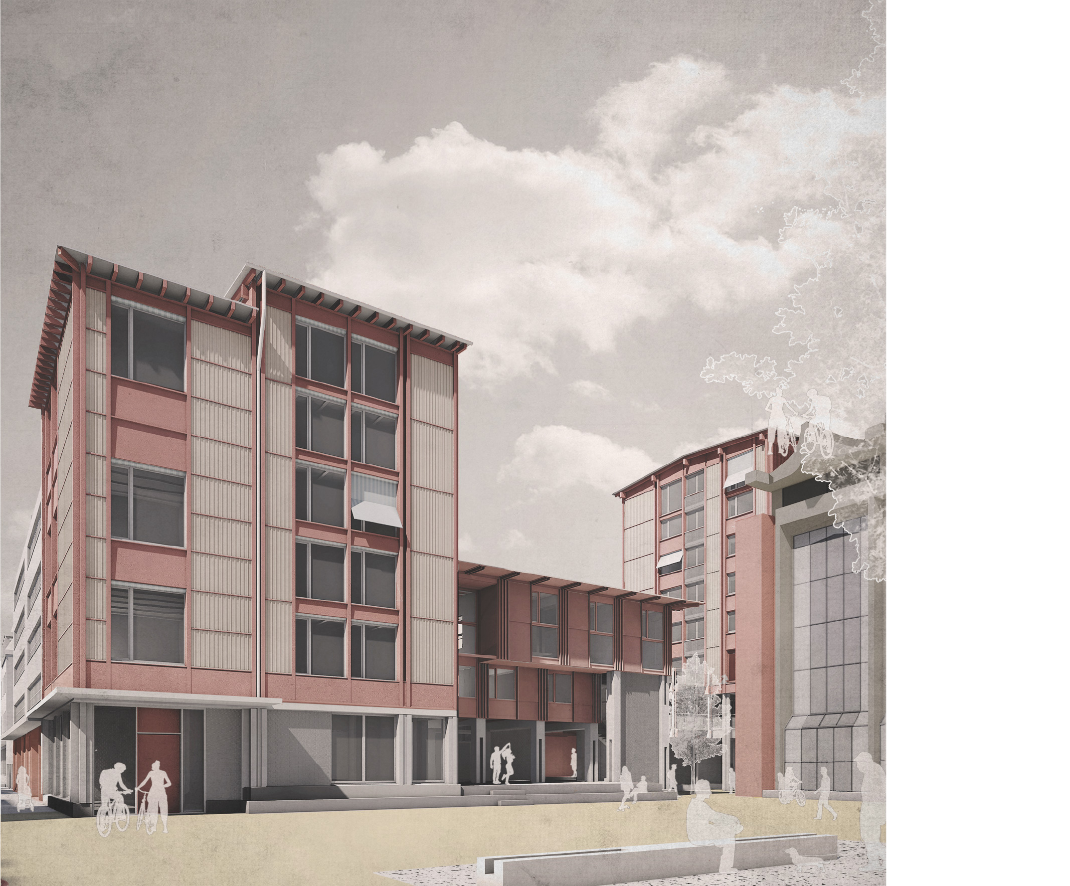Der Projektstandort befindet sich an einer städtebaulichen Schlüsselstelle zwischen den raumplanerischen Entwicklungen rund um den Bahnhof SBB in Basel und dem Quartier «Gundeli». Im Kontext von Gentrifizierung wird auf Umschichtung statt Verdrängung gesetzt. Dem räumlichen Druck wird möglichst viel Luft entgegengesetzt und der Platz über die Strassen hinweg gespannt.